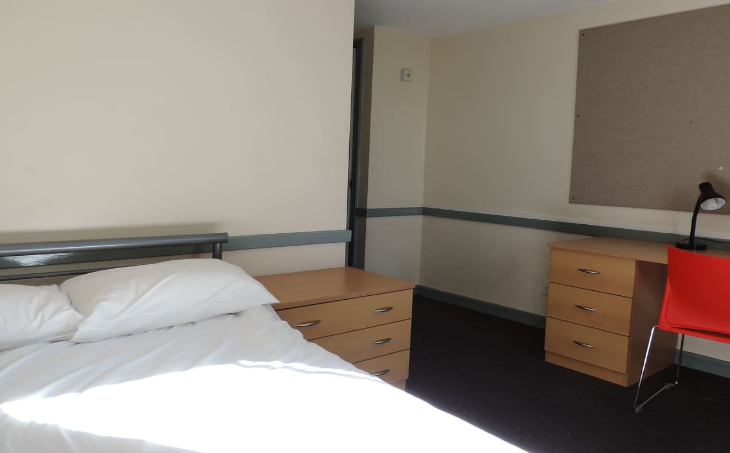 Sistemazione in appartamenti formati da 5-9 camere singole con bagno privato e aree comuni. L'arredamento delle camere comprende un armadio, una scrivania e una sedia. Lenzuola fornire dal College. Asciugamani non forniti.